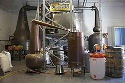 Smögen Whisky is a distillery in Sweden which produces single malt whisky and gin. Established in 2009 by Pär Caldenby, a lawyer, whisky enthusiast and author of Enjoying Malt Whisky, the Smögen Distillery produced its first spirit in 2010 after receiving a grant of almost a million Swedish krona from the government.[1][2][3][4] The distillery is located on a farm near Hunnebostrand, on the west coast of Sweden, north of Gothenburg. The distillery is named after Smögen Island, which is nearby. Designed largely by Pär Caldenby the distillery has a 900-litre wash still, a 600-litre spirit still, and a production capacity of 35000 litres.[5] The first bottling, of a three-year-old cask strength single malt whisky, took place in 2013.[6] The whisky, "Smögen Primör", won a silver medal at the 2014 Stockholm Beer and Whisky Festival.[7]
