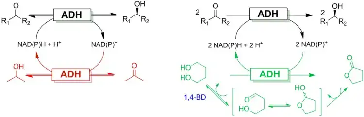 - ^ Kara S, Spickermann D, Schrittwieser JH, Leggewie C, van Berkel WJH, Arends IWCE, Hollmann F (2013) More efficient redox biocatalysis by utilising 1,4-butanediol as a "smart cosubstrate". Green Chem 15 (2):330-335. doi:10.1039/c2gc36797a