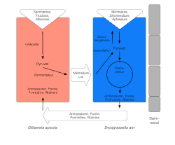 Gilliamella apicola is a bacterium that breaks down sugars and produces carboxylic acids (saccharolytic fermenter), while Snodgrassella alvi oxidizes carboxylic acids. In the gut, they form a metabolic resource-sharing network in which each species benefits from the properties of the other. Gilliamella apicola appropriately converts simple carbohydrates (sugars) into energy through glycolysis and passes the leftover molecules to Snodgrassella alvi, which has and uses the genes necessary for the Krebs cycle but cannot perform glycolysis. Both species also have numerous genes and proteins that enable intestinal colonization and interactions between bacterial cells.[4]