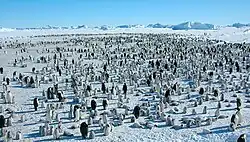 A site at the south-western extremity of the island, comprising 263 ha of sea ice adjacent to the coast, has been identified as an Important Bird Area (IBA) by BirdLife International because it supports a breeding colony of about 4000 pairs of emperor penguins. It is one of only two such colonies on land in the Antarctic Peninsula region, the other being that at the Dion Islands which is now no longer existent.[14] This colony is also unique in terms of its breeding cycle compared to more southern breeding sites. In winter, incubating males don't feel the darkness of the sky unlike in more southerly populations. Because the ice on which the colony stands on is affected by the sun much later in the year than in other colonies, the development of the emperor chicks is slightly delayed. This gives the chicks in Snow Hill a lot more time to lose enough of their fur to head to the sea unlike in other populations, whose chicks arrive to the sea mostly covered in fur down to a point where they cannot swim yet. This developmental delay also gives tourists an opportunity to visit the colony while the chicks are still under the care of the adults.