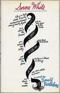 Snow White is a post-modernist novel by author Donald Barthelme published in 1967 by Atheneum Books.[1] The book inverts the fairy tale of the same name by highlighting the form by discussing the different expectations and compromises the characters make to survive in their world. This is done through Barthelme's fragmentary rhetoric and discourse, by shifting perspectives from the seven "dwarves" or Snow White herself, as well as the wicked step-mother, "Jane".[2] It was Barthelme's first novel, published seven years after he started having his short stories published in literary magazines and publications such as The New Yorker.