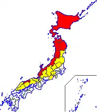 "Heavy Snowfall Zones" refers to places where snowfall and snow cover are severe enough to be a hindrance to the livelihood of inhabitants or the development of local industry. In all, more than half of Japan's land area carries the designation—ten complete prefectures and portions of fourteen others out of Japan's 47 prefectures. Heavy snow areas are eligible for subsidies and other special consideration from the central government to help them cope with the snow (such as for snow removal) and otherwise bring stability to local livelihoods and economies.