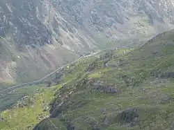 Clogwyn | 53°05′03″N 4°04′49″W / 53.0841°N 4.0803°W | 2,556 ft (779 m) | Located on the exposed ridge and overlooks the Llanberis Pass and the Clogwyn Du'r Arddu cliffs, a popular climbing spot. |