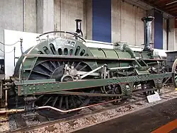 The predecessor of Cail & Cie had acquired a license for producing Crampton locomotives.[2] In the end the French Revolution of 1848 practically put an end to this production. The new company Cail & Cie then resumed production. From 1852 till 1857 it built 72 of these locomotives for regional French railroads. After 1857 the slump in internal demand was compensated by growing exports.[5] At one time the company exported 57% of its locomotive production.[6] In 1857 it exported locomotives to Spain and Russia.[6]