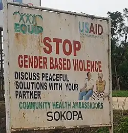 The Declaration on the Elimination of Violence defines three social arenas in which violence commonly takes place (1) in the family—including domestic violence, infanticide, and traditional practices such as female genital mutilation, foot binding, and bride burning; (2) in the community—including rape, sexual assault, sexual harassment, and commercialized violence such as sexual slavery, labor exploitation, female migrant workers; and (3) by the State—including violence against women in detention, and in situations of armed conflict such as systematic war rape.[79] In order to address and end gendered violence, solutions must address both the root causes and interpersonal manifestations of gender roles and power relations in order to ensure a balance of power at all levels of society.