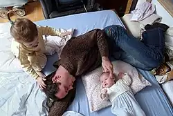 According to anthropologist Maurice Godelier, a critical novelty in human society, compared to humans' closest biological relatives (chimpanzees and bonobos) which are unaware of paternity, is the parental role assumed by men.[42][43]