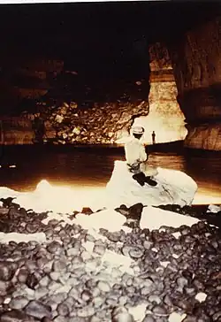 In 1967, Eric Robson, Chris Clapham and Kabir Ahmed explored and surveyed the cave, recording 8 km of passage.[6] Following this the Ethiopian Tourist Board published a brochure about the cave.[7] Although the area was not easily accessible and the organized adventure tourist industry did not yet exist, a few intrepid visitors made the trip to the then remote cave.
