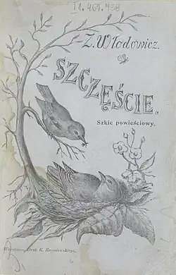 In 1902, Zubovienė published a novel Szczęście (Happiness) in Polish. Her husband purchased and destroyed printed copies and for a long time it was believed that no copies have survived.[11] One surviving copy was found in a library of Zubov's descendent, translated into Lithuanian, and published in 2015.[8] The novel was semi autobiographical. It describes a summertime visit of a guest from Warsaw. It features pleasant vacation mood and light philosophical conversations, but there is an undercurrent of tension (perhaps because the guest cannot be trusted and the hosts are engaged in the smuggling of illegal Lithuanian publications).[12]