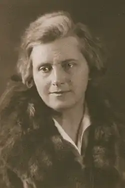 Čiurlionienė continued to be active in public life. In March 1929, she attended a meeting on the situation in Eastern Europe organized by the Women's International League for Peace and Freedom (WILPF) in Vienna. Her efforts to defend Lithuania's territorial claims to Vilnius Region received praise in Lithuania and she was sent to the 6th congress of WILPF in Prague in August 1929.[16] She also became a member of the Lithuanian government delegations to the Assembly of the League of Nations in 1929–1931 and 1935–1938.[1] The other two members of the 1929 delegation were Prime Minister Augustinas Voldemaras and diplomat Vaclovas Sidzikauskas.[17] In 1930, she joined the League's Fifth Committee which dealt with social and humanitarian questions such as human trafficking, prostitution, children's welfare.[16] In Switzerland, she learned about the Union of Friends of Young Women (French: Union internationale des Amies de la jeune fille) established in 1877 and founded its chapter in Lithuania (Mergaičių bičiulių draugija) in 1929. The union sought to help young women who moved from villages to larger cities to avoid being exploited or trafficked.[3][16] In 1935, Čiurlionienė returned to the League and became a member of the First Committee (legal and constitutional questions) and Sixth Committee (mandates, slavery and political questions), but returned to the Fifth Committee in 1936.[16] In 1937, participated in the Second Congress of Lithuanian Women organized by the Lithuanian Women's Council where she read a paper on the causes for marriage failures.[10] The Lithuanian Women's Council unsuccessfully suggested her to the State Council of Lithuania and to run as a candidate to the Fourth Seimas.[17]