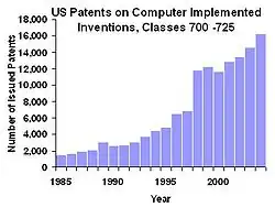 - ^ "Patent Counts By Class By Year, CY 1977 - 2015". United States Patent and Trademark Office. Retrieved 2017-03-13.
