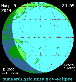 - ^ a b c "May 9–10, 2013 Annular Solar Eclipse". timeanddate. Retrieved 12 August 2024.