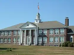 A 2010 report by the New England Association of Schools and Colleges (NEASC) declared that the physical condition of the current high school building “does not adequately support” educational programs and support services.[14] Difficult conditions in the building include “a lack of adequate space in certain instructional areas”, limited handicapped accessibility, out-of-date fire safety equipment, a small gymnasium space, and poor ventilation.[15] Questions about the structural integrity of the building's foundation led to some areas of the building being condemned during the 2008–2009 school year. The building was originally constructed as a project of the Works Progress Administration, but has since grown considerably with the addition of several new wings over the years.