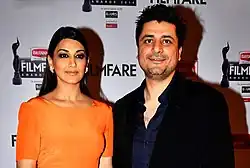 Bendre first met filmmaker Goldie Behl, son of director Ramesh Behl on the sets of her film Naaraaz.[110][111] Bendre married Behl on 12 November 2002 in Mumbai.[112] They have one child, a son born in 2005.[113][114]
