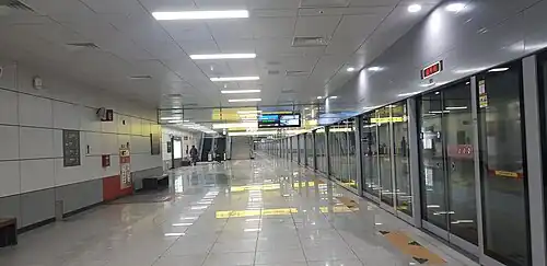 Songdo Moonlight Festival Park station (Korean: 송도달빛축제공원역) is a Line 1 subway station of the Incheon Subway in Yeonsu-gu, Incheon, South Korea. It opened on December 12, 2020 and became the terminal station at the same time.[1][2] It is designed to allow trains to pass the section beyond the station at a speed of 65 km/h when the route is extended later.