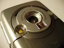 The K700 weighs 93g (3.3 oz). It is a rectangular unit that is typically held in the palm of the hand, with the buttons operated by the thumb. It has the 'dual-front' design common to most Sony Ericsson mobile phones since the T630, with the back of the mobile phone designed to look like a digital camera. The central joystick button is used for selecting options and navigating menus (as this is essential for phone operation it wears quickly and jams under heavy use), with the "C" button as an 'undo' or 'delete' button, and the arrow-labeled button as a 'return' or 'back' button. The two buttons labeled by black horizontal lines, known as 'hotkeys' or 'soft keys' perform the function of making binary decisions, labelled on the phone's display (e.g.: save/discard). The on/off button is a black button that is located on the top of the phone next to the IrDA port.