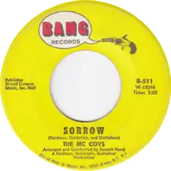 "Sorrow" is a song first recorded by the McCoys in 1965 and released as the B-side to their cover of "Fever". It became a big hit in the United Kingdom in a version by the Merseys, reaching number 4 on the UK chart on 28 April 1966.[1] A version by David Bowie charted worldwide in 1973.