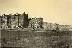 In 1931–1933, city blocks were built, which consisted of residential complexes for 500–1000 people, including 4-storey residential buildings, public buildings and institutions for children. The houses were located parallel to each other, forming two rows, between which greened streets should have been created.