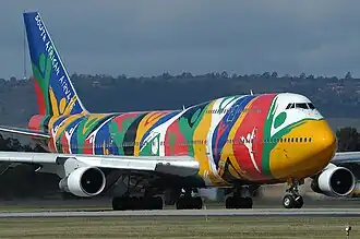The South African Airways had one of their Boeing 747-300s specially painted in rainbow colours to transport the South African Olympic team to Sydney. The aircraft was fondly dubbed the Ndizani.