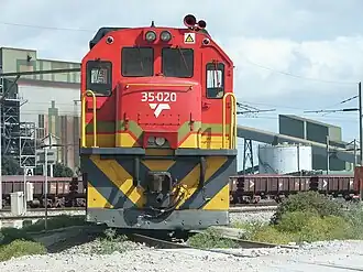 The Class 35 is South Africa's standard branch line diesel-electric locomotive. The GE Class 35-000 was designed to operate on light rail and they work on most branch lines in the central, western, southern and southeastern parts of the country.[3]