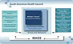 Created by UNASUR's Council of Heads of State and of Government as proposed by the South American Council of Health, gathered in Cuenca, Ecuador in April 2010, ISAGS operations are based on the Triennial Work Plan 2012–2015,[2] which is itself a result of the priorities defined by the Quinquennial Plan 2010-2015 of the South American Council of Health.[3]