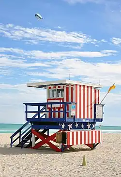 Another unique aesthetic attribute of South Beach is the presence of several colorful and unique stands used by Miami Beach's lifeguards on South Beach. After Hurricane Andrew, Architect William Lane donated his design services to the city and added new stops on design tours in the form of lifeguard towers. His towers instantly became symbols of the revived City of Miami Beach.
