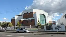 The Greek Association of Brisbane was established in 1913. In May 1921 it established a community centre in Charlotte Street in the Brisbane CBD, followed by St George's Greek Orthodox Church on the same site in 1929.[84][85] However, the growth in Brisbane's Greek population, particularly after World War II, resulted in a need for a larger church. A new St George's Greek Orthodox Church was built at 33 Edmondstone Street (corner Besant Street) in South Brisbane.[86] The foundation stone was laid on 4 May 1958 by Archbishop Theophylactos.[87] The finished church was opened and dedicated on 24 April 1960 by Archbishop Ezekiel.[88][89] The architect was Ronald Martin Wilson. The church is octagonal with an octagonal dome and is richly decorated internally in the Greek Orthodox tradition. A new Greek community centre (now known as The Greek Club) was built beside the church at 37 Edmondstone Street (27°28′47″S 153°00′55″E / 27.4796°S 153.0153°E), opening in 1976.[90][91]