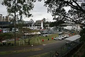 - Paths of the former Stanley Street branch line (1882–83), dry dock siding (1882–84) and South Brisbane wharves extension (1896–97). Although the tracks have been removed, the paths and gradients remain. That of the 1896–97 extension of the dry dock siding has been asphalted.[1]