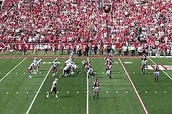 In the season-opener at home which snapped their losing streak, the Gamecocks' defense was "basically winning the game on its own" for most of a shutout victory over NC State.[119] Adversely, the offense struggled; starting quarterback Tommy Beecher had four interceptions and five sacks before suffering a head injury and being replaced by Chris Smelley.[119] With Smelley starting, South Carolina went on the road and lost their new No. 24 national ranking by falling to Vanderbilt for the second consecutive season.[120][121][122] The Gamecocks hosted No. 2 Georgia,[120] with another chance for the biggest victory in program history.[75] Despite leading midway through the third quarter, South Carolina lost by a touchdown.[123] Hosting FCS opponent Wofford, similarly to the matchup in 2006, the Gamecocks were only up by one score in the final minutes before winning.[124] In a home game against UAB, Garcia came in at quarterback early and saw the first significant action of his career, kick-starting the offense with his mobility, though Smelley and Beecher were alternating at the position by the end of the victory.[125] By this point, South Carolina had the top defense in the country.[126] Smelley was named the starter before a road game at Ole Miss; he and the defense led the Gamecocks to a victory which snapped their six-game SEC losing streak.[126][125] The next game, a trip to Kentucky, would be a matchup between two of the SEC’s top defenses.[127] Garcia replaced a struggling Smelley in the third quarter and turned around the offense; on special teams, two big plays from Captain Munnerlyn made up for Ryan Succop's four missed field goals; South Carolina won by a touchdown.[127] The Gamecocks were now 6–2, on a four-game winning streak.[120]