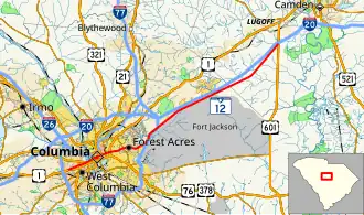 South Carolina Highway 12 (SC 12) is a 28.250-mile (45.464 km) state highway in the U.S. state of South Carolina. It serves Columbia and areas to its east. It serves as a parallel route to Interstate 20 (I-20) for much of its length.