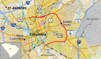 South Carolina Highway 16 (SC 16) is a 9.6-mile-long (15.4 km) primary state highway in the U.S. state of South Carolina that exists mostly within Columbia in Richland County. Its routing is in a backward C-shape.
