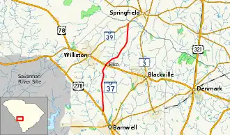 South Carolina Highway 37 (SC 37) is a 15.430-mile (24.832 km) primary state highway in the U.S. state of South Carolina. It provides a direct route between Barnwell and Springfield.