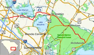 South Carolina Highway 45 (SC 45) is a 76.060-mile (122.407 km) primary state highway in the U.S. state of South Carolina. It serves as the main thoroughfare in northern Berkeley County.[4]
