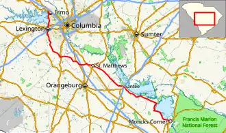 The highway runs generally southeast from the central part of South Carolina to near the Atlantic Ocean and is listed as a hurricane evacuation route.[1]