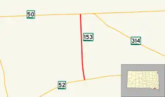 South Dakota Highway 153 (SD 153), also known as 435th Avenue, is a state highway in Yankton County, United States, that runs from SD 52 to SD 50.