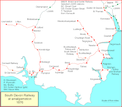 - Plymouth - joint with the Cornwall Railway; renamed Plymouth Millbay from 1 May 1877, closed to passengers 24 April 1941 and to goods traffic 20 June 1966