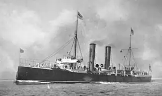 The station suffered significant ship reductions between 1869 and 1874.[5] From 1870 it was commanded by a captain, designated the "senior officer",[6] and comprised just three gunboats[7] although it had responsibility for the Western Atlantic from Brazil South.[8] The squadron's only permanent base was a coal station at Stanley on the Falkland Islands.[9] It was disbanded altogether in 1905.[10] Its area of operation, along with that of the Pacific Station, was ultimately absorbed into that of the North America and West Indies Station, with its main base at the Royal Naval Dockyard in the Imperial fortress colony of Bermuda, which was redesignated the America and West Indies Station.[11]