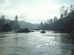 The South Fork American River is a major tributary of the American River in El Dorado County, California,[1] draining a watershed on the western slope of the Sierra Nevada east of Sacramento. The river begins in pristine Desolation Wilderness and flows through the Sierra Nevada foothills. The river at Coloma was the site of James Marshall's discovery of gold at Sutter's Mill on January 24, 1848, which started the California Gold Rush.[5] The South Fork of the American is "the most popular recreation stream in the West" for whitewater rafting in North America,[6] e.g., 80,000 visitors in 2011.[7] Professional whitewater rafting companies have been offering commercial rafting trips on the South Fork American River since 1978.
