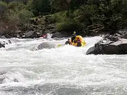 The South Fork of the American has approximately eight sections of boatable whitewater ranging from class II to class V.[10] The most commonly run section of river is the class III stretch between Chili Bar Dam and Folsom Lake.