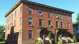 The South Green Historic District encompasses a predominantly 19th-century residential area near the South Green of Hartford, Connecticut. This area features a variety of residences in both high and common styles, from the elaborate home of armsmaker Samuel Colt to multi-unit apartment houses, many of which were built between about 1860 and 1900. The district is roughly triangular, extending from South Green along Main Street and Wethersfield Avenue to include Morris, Dean, and Alden Streets. The district was listed on the National Register of Historic Places in 1977.[1]