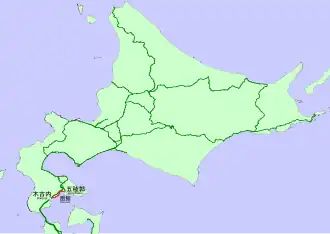 - ^ South Hokkaido Railway Company. "路線図・駅情報" (in Japanese). Retrieved 3 April 2016.