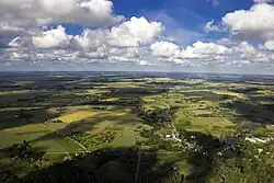 The coastline of South Kurzeme Municipality is over 100 kilometres (62 mi) long.[9] Erosion of the coast north of Liepāja has been accelerated because breakwaters at Liepāja's seaport intercept sand drifting northward along the coast. The coast south of Liepāja features sandy beaches and dunes, behind which are lagoons and marshy plains. The largest of the lagoons are Lake Liepāja and Lake Tosmare on the municipality's border with Liepāja, and Lake Pape near the Lithuanian border.[10] The Rietumkursa Upland rises east of the coastal lowlands, its highest point being Krievukalns at 190 metres (620 ft) in Embūte Parish.[2]