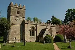The Church of England parish church of Saint James the Great began as a chapel of the parish of Stanton Harcourt, and remained so until 1868.[6] The oldest parts of the church building date from the latter part of the 12th century. The present chancel arch was built about 1300, the tower arch was built during the 14th century and the south doorway of the nave dates from about 1400. The church building was extensively altered in the 15th century: the north aisle and chapel were added, the bell tower was completed, and new windows were inserted in the south and east walls of the chancel.[6]