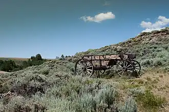 South Pass City developed rapidly as a stage and telegraph station on the Oregon Trail during the 1850s. The site of the first settlement in the area was about 9 miles (14 km) south of present-day South Pass City, at what is today known as Burnt Ranch. Burnt Ranch was located where the Emigrant Trails crossed the Sweetwater River for the last time and ascended toward the South Pass.[1]