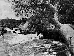 Some land clearing for cattle grazing conducted in the early 20th century has occurred.[9] During the 1950 to 1960s sand mining was conducted at the northern ocean beach area but reserves were limited.[5] From the 1870s onwards the island's inner shores were used as camp grounds for holders of oystering licences.[5] A small township called Moondarewa with 156 surveyed lots, was established at the island's southern tip. By 1953 the island's natural movement north had washed away most of the settlement.[5] Also once located at the southern end was a small area of vine scrub rainforest that attracted significant bird-life.[2]