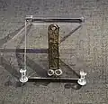 Due to the constant threat of the Mongol Empire and increased military expenditures the Song government started to cast more coins leading to inflation.[14] Eventually coins became a rarely used item in Lin'an causing the Southern Song government to start producing small coin tallies called Qian Pai (錢牌) in denominations of 10, 40, 100, 200, 300, and 500 wén, in reality however the denominations were discounted per 100 wén (often at 30%) and were worth less on the actual market, an example of this would be 77 wén for official business, 75 wén for trading purposes, and could be discounted to as low as 56 for writings.[14] The majority of Qian Pai tablets tend to have the description "(for) use in Lin'An Prefecture" (臨安府行用), the contemporary capital city.[14] The Qian Pai are attributed to the Jingding period (1260–1264).[14]