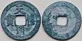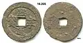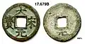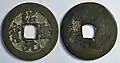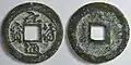 These 10 wén cash coins were so overvalued by the government that they were eventually devalued by the market until they were only worth the equivalent of 3 cash coins.[3]