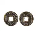 By the time of the Chongning Zhongbao (崇寧重寶) cash coins of the Emperor Huizong, 10 wén cash coins had become the norm as the government used it as a method to confiscate the wealth of the people to enrich its treasury.[3] In a story dating to the Northern Song dynasty time period, a man purchasing a bowl of soup is used to illustrate the hardship caused by the lack of 1 wén cash coins, which are known as Xiaoping cash coins (小平錢).[3]