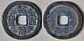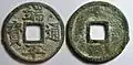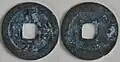 - ^ A rare variety of this cash coin has its inscription written in Nine-fold seal script (九叠篆) which was a style of Chinese calligraphy used during this period that was usually only reserved for official Song dynasty seals.
