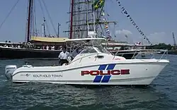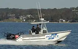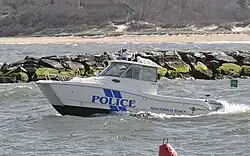 The Southold Police Department patrols three regional sectors, including Plum Island and Fishers Island.[7] The Southold Police Department's Marine Division also works with the United States Coast Guard to patrol and enforce maritime law in Orient Harbor, Greenport Harbor, the Peconic Bay, and a portion of the Long Island Sound.[8]