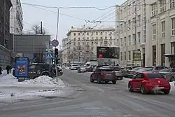 Sovetskaya Street (Russian: Советская улица) is a street in Novosibirsk, Russia. It branches off from Krasny Avenue near the Alexander Nevsky Cathedral and then runs north parallel to it. Sovetskaya Street ends at the intersection with Zheleznodorozhnaya and Pisarev streets.